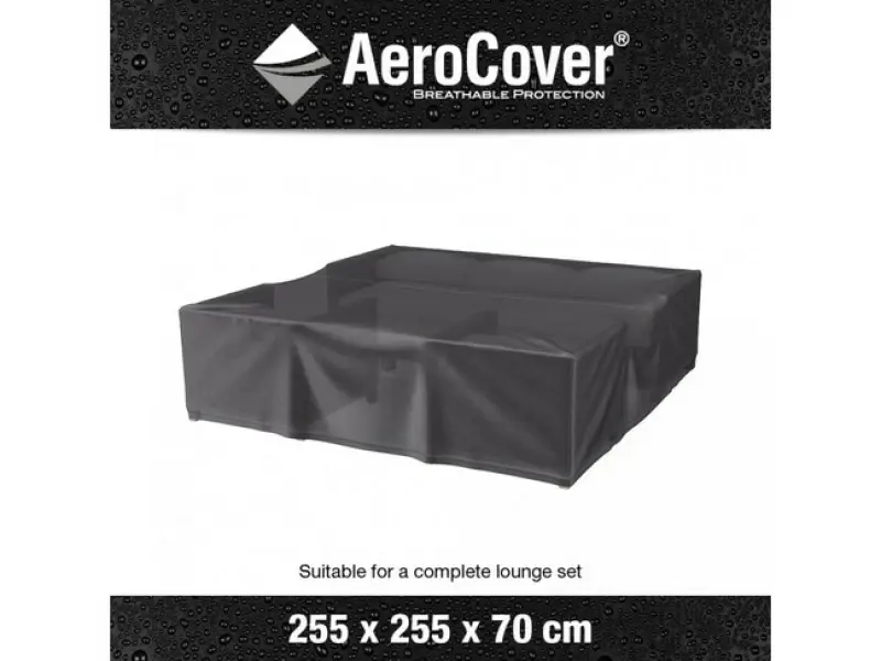 Štvorcový ochranný kryt na záhradný nábytok s rozmerom 255 × 255 × 70 cm je navrhnutý špeciálne pre rohové sedacie súpravy a väčšie terasové zostavy.